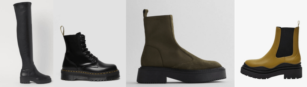 This season you can never go wrong with pairing a chunky boot with leather, jumpers and oversized shirts. Again you will most likely already have key wardrobe pieces that will be complemented with a chunky boot!