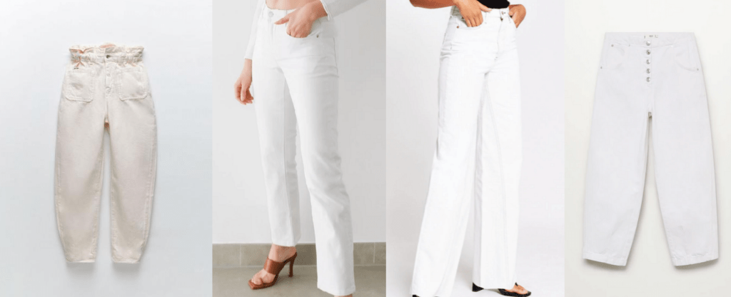 The best way to wear white denim is with a bold or neutral colour palette depending on your personal preference. I find it best to try on a range of knits and cardis you already have in your wardrobe to see what works best for you.